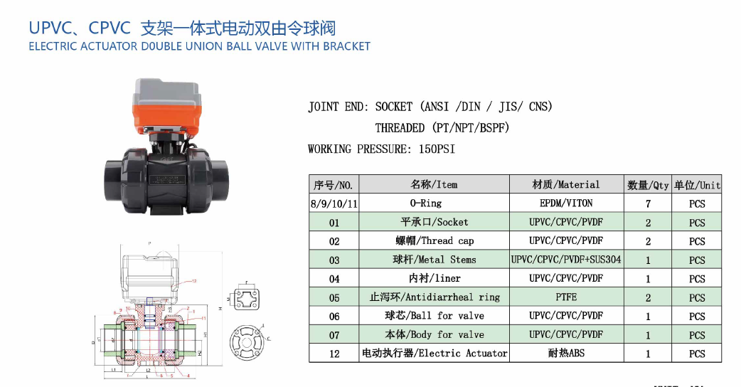 UPVC 、 CPVC 支架一 体式电动双由令球阀