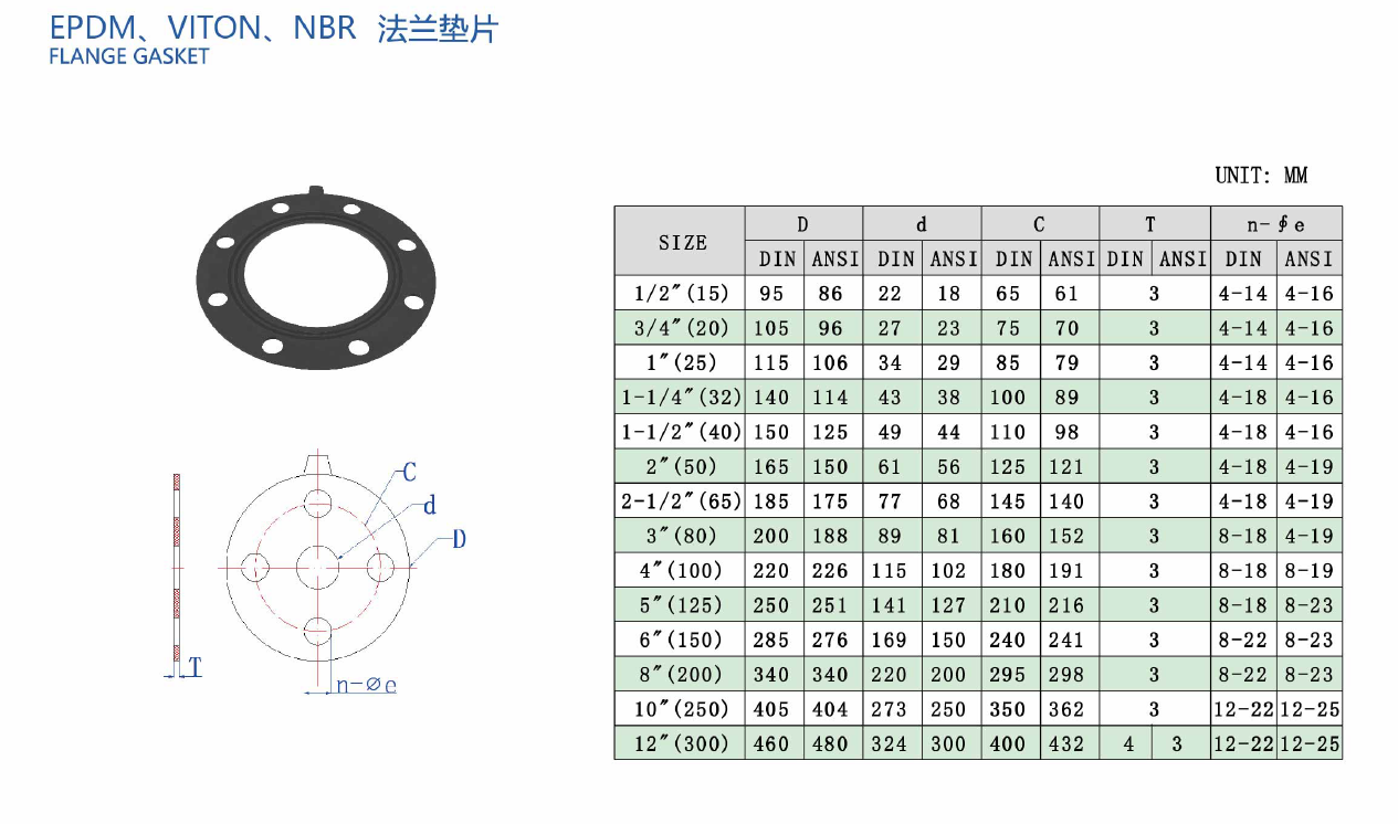EPDM 、 VITON、 NBR 法兰垫片