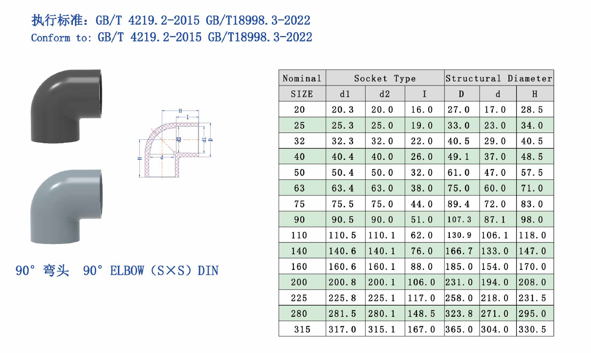 UPVC、UPVC 90°弯头 (S*S)